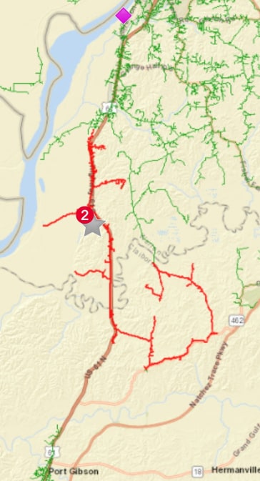 The power outage began just before 1 a.m. and is expected to be repaired this afternoon by 5 p.m. Affected is a large swath beginning just south of Letourneau Road and reaching all the way down to Old Port Gibson Road, near the Natchez Trace.