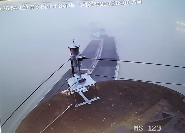 Heavy early morning fog on the Mississippi River is being blamed for barges hitting the supports of the old Highway 80 Bridge in Vicksburg.