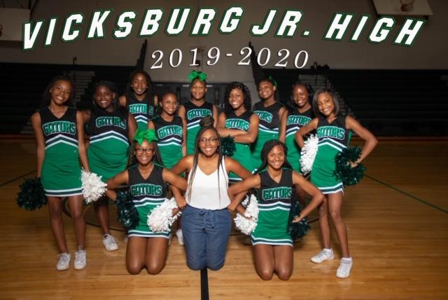 The Vicksburg Junior High School Gator cheerleaders, led by head coach Kala Blanton, came out to cheer for the basketball teams on Thursday, Oct. 31. Blanton is now in her second year as coach, and she plans to improve the program more each year.