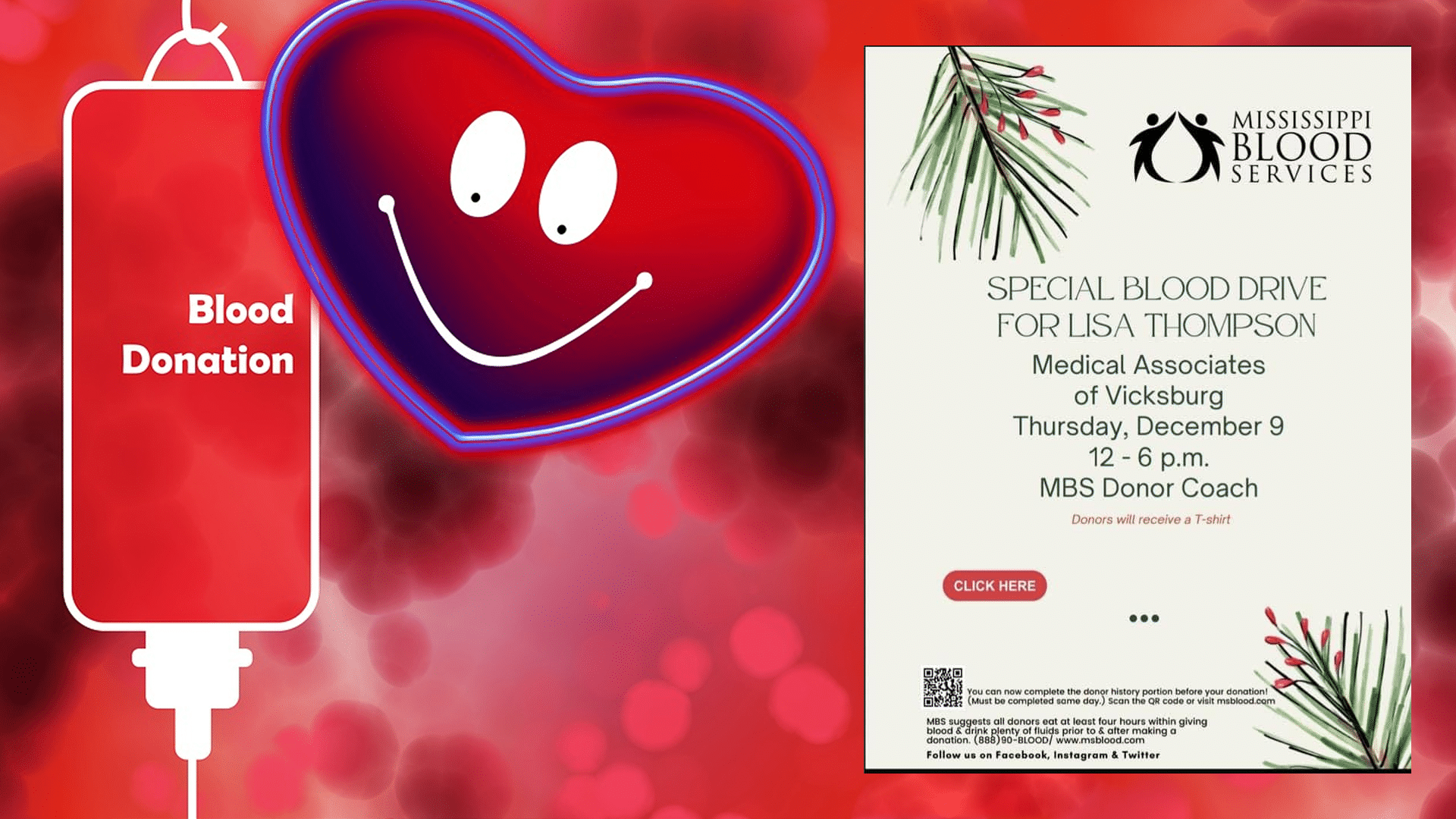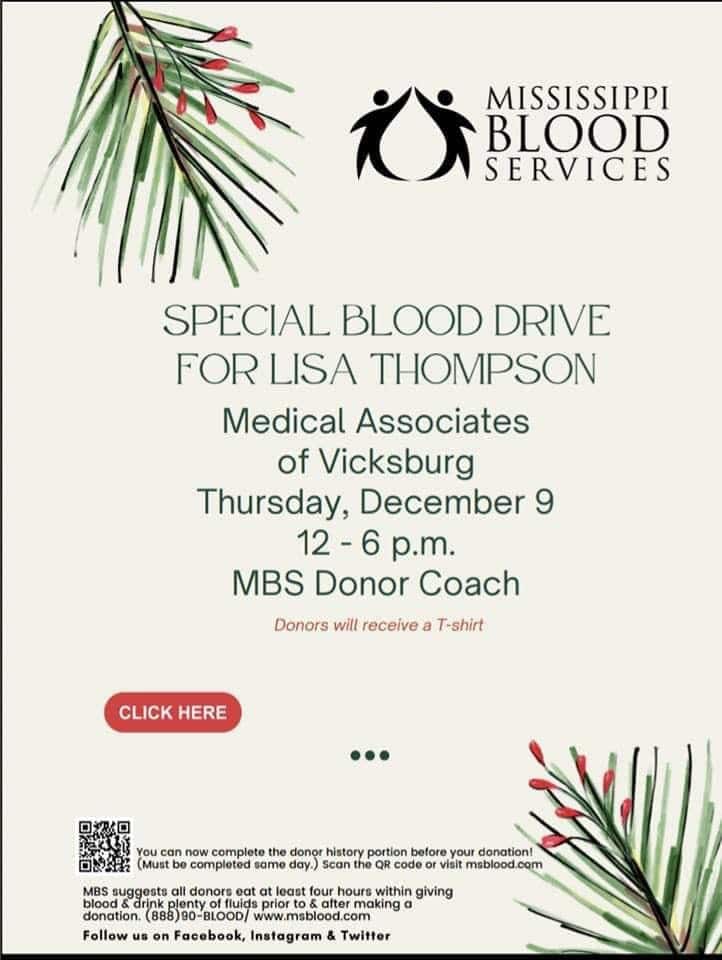 A blood drive for Lisa Thompson will be held at the Medical Associates of Vicksburg on Dec. 9 from noon to 6 p.m.