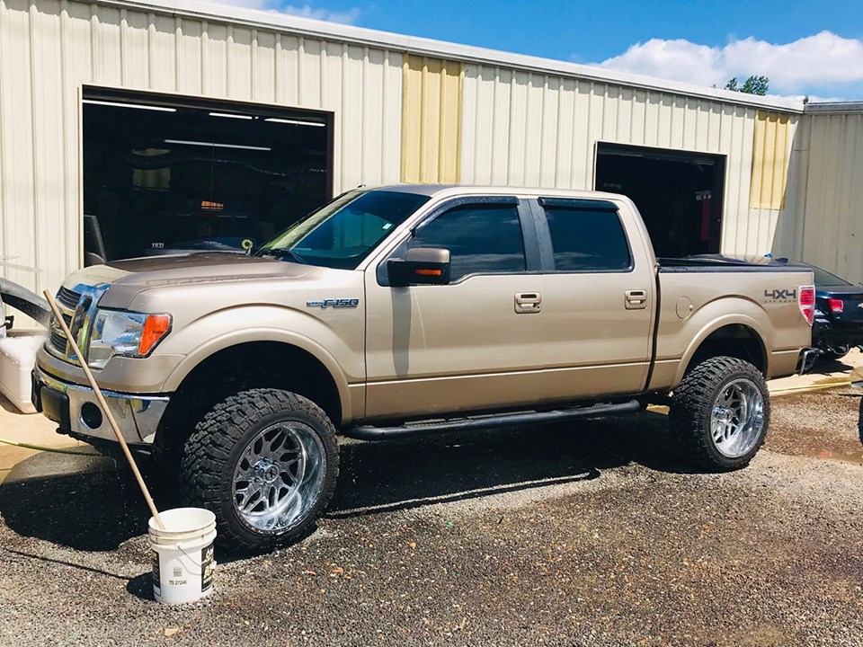 Be on the lookout for a Gold, 2012 Ford F-150 4X4 with upgraded rims and a lift kit. Mississippi license plate HR 15.