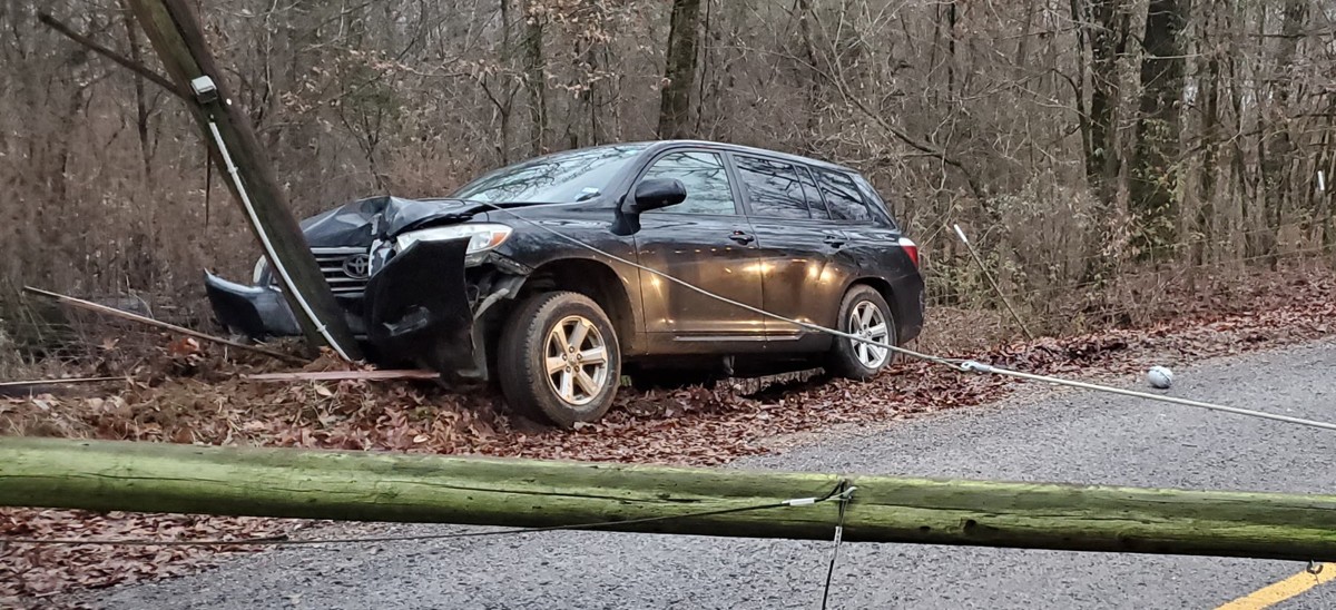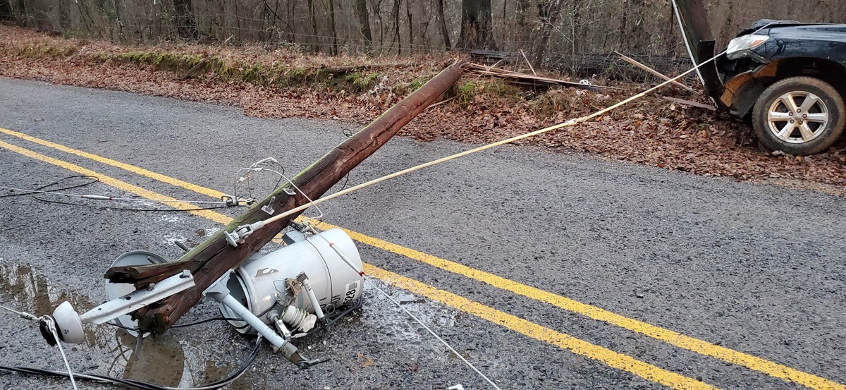 A vehicle hit a light pole around 5 p.m. Friday, taking down a power line and a transformer.