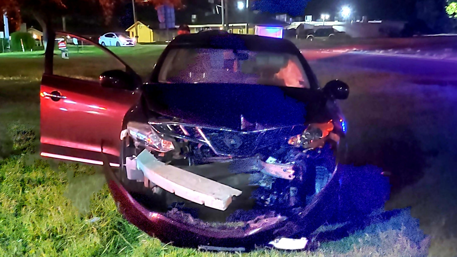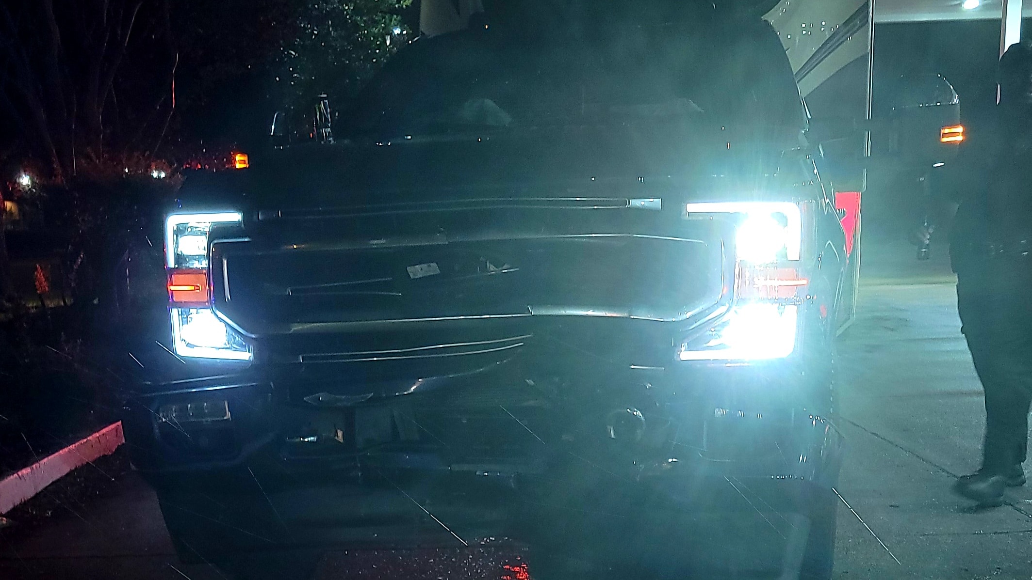 At 10:43 p.m. an accident occurred when a blue SUV rammed into a truck hauling a camper.