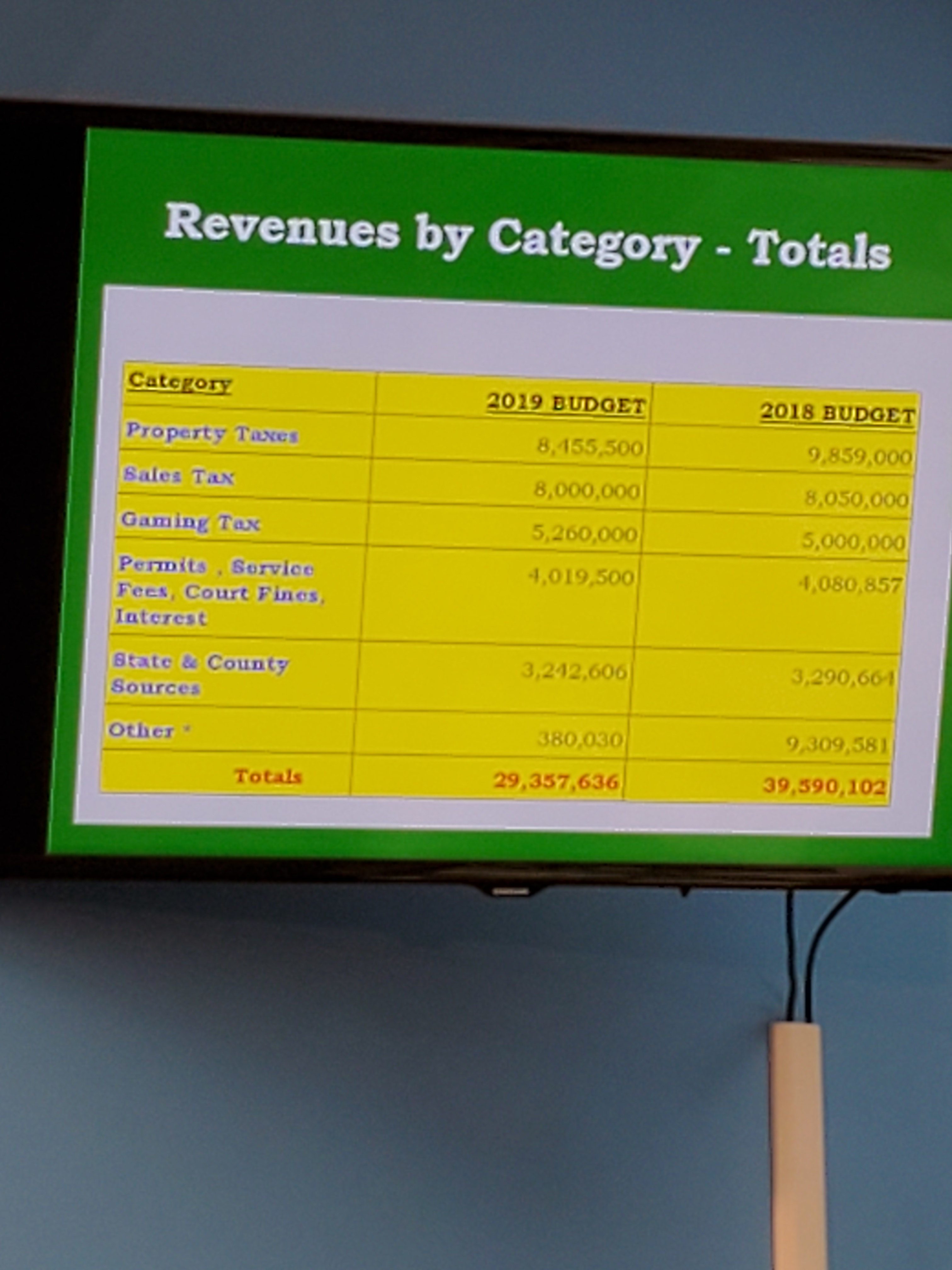 The proposed budget for fiscal year 2020 is $29,357,636.00. That is down primarily due to decreased tax revenue from Entergy. A turbine at the Baxter Wilson plant failed and that decreased the plant’s ability to produce revenue and, thus, reduced taxable income.