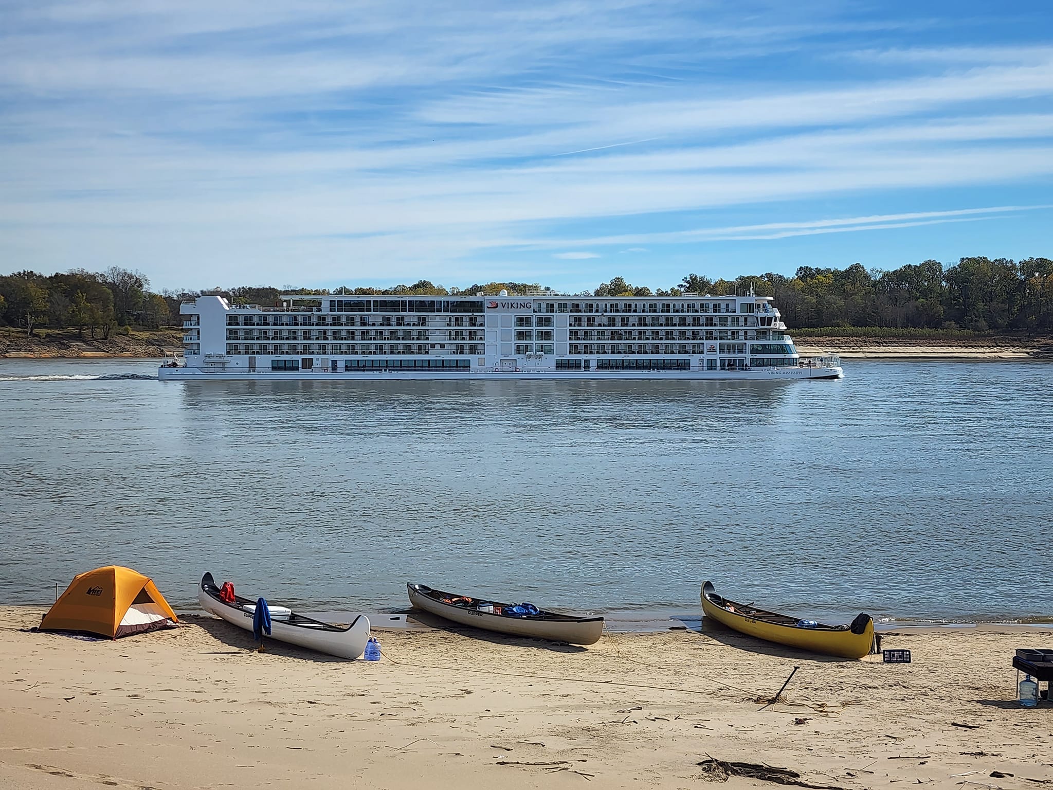 The crew used 3 Clipper Langley canoes that are 29 feet long, weigh 420 pounds each, and can hold 12 people without gear. “They are made for big open water and waves. They’re perfect for the Mississippi River,” explained Logue.