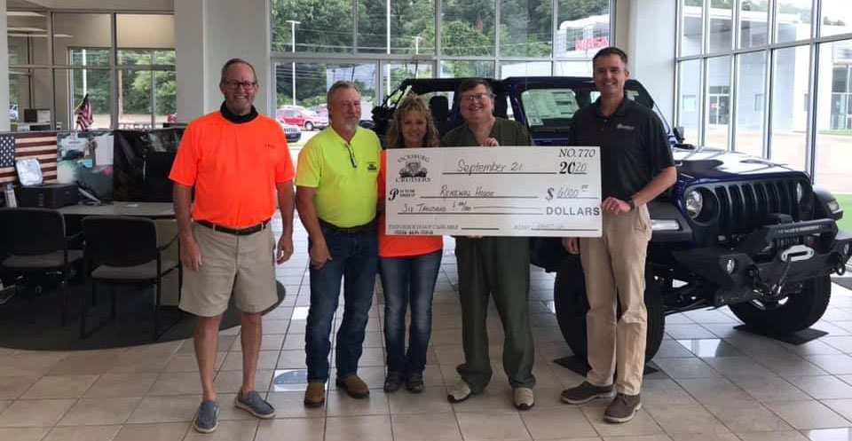 The Vicksburg Cruisers Car Club presented Dr.Dan Edney, President of the Board for Renewal House, with a check for $6,000 Monday, Sept. 21, from their annual car show, which was held July 18 at Blackburn Motor Company.