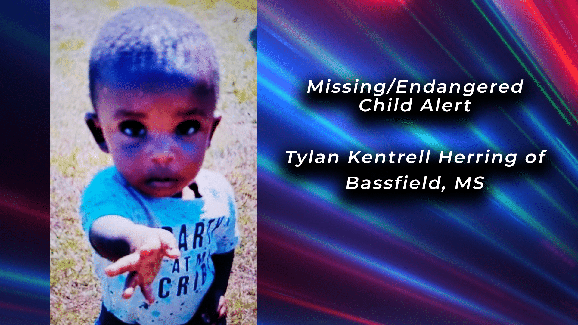 The Mississippi Bureau of Investigation has issued an Endangered/Missing Child Alert for 2-year-old Tylan Kentrell Herring of Bassfield, MS, in Jefferson Davis County.