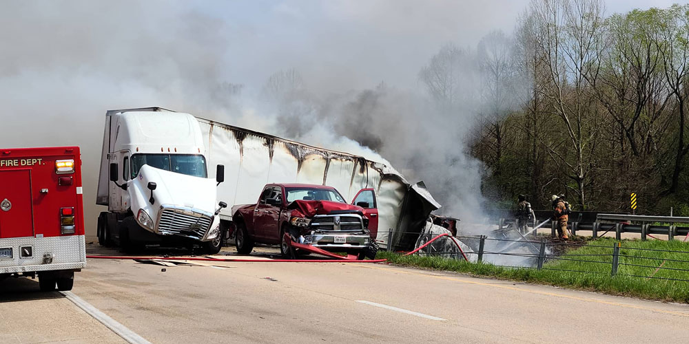 Fiery crash closes interstate at county line