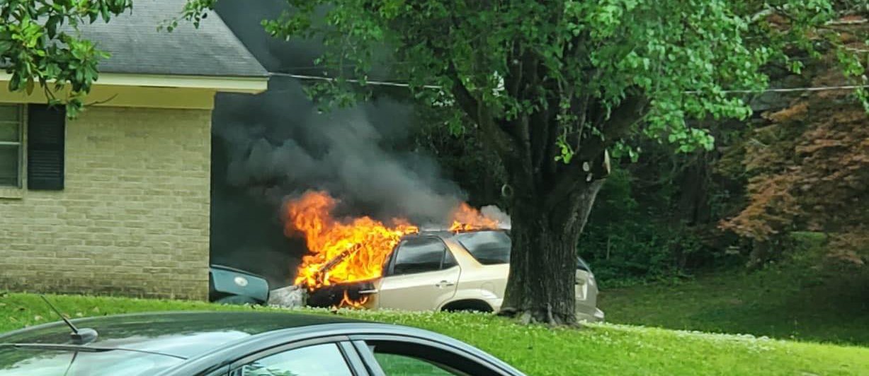 A vehicle fire on Terrace Street in the Marion Park subdivision in Vicksburg gutted a minivan.