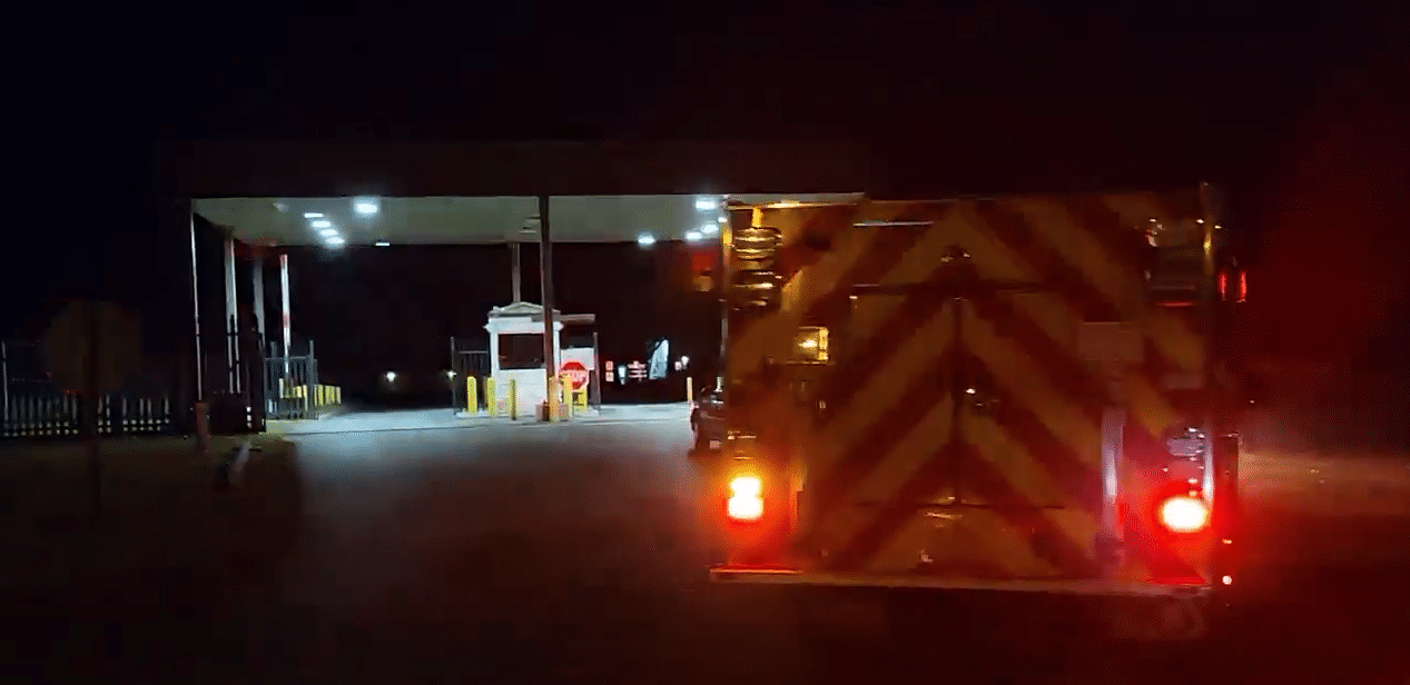 Fire Chief Craig Danczyk was close to the area and was the first to arrive at ERDC, entering through the Bazinksky Road gate. Other units soon arrived on the scene and drove to the structure, also entering via the Bazinsky Road gate.