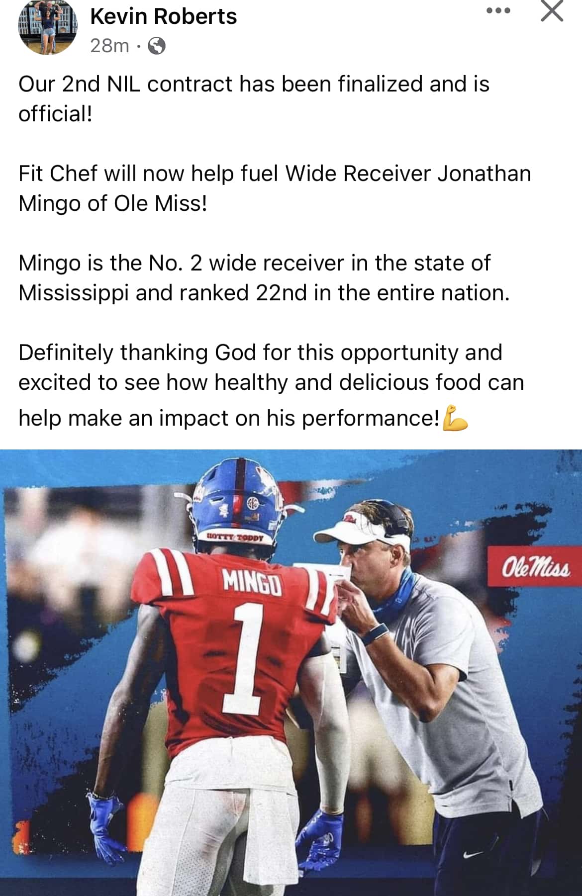 Fit Chef owner Kevin Roberts has announced the restaurant has signed a second NIL deal, this time with Ole Miss football player Jonathan Mingo.