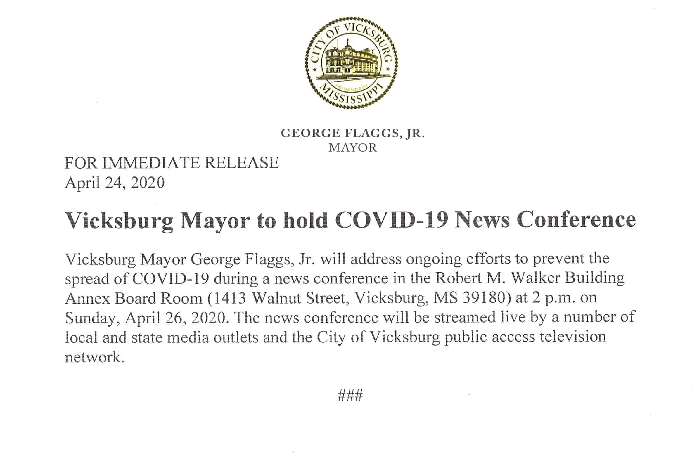 COVID-19 Flaggs announces COVID-19 news conference for Sunday Published 6 years ago on April 24, 2020 By Ronni Mott See a typo? Report it here. Related Topics:COVID-19 coronavirusFeatured Up Next Wreck closes Washington Street ramp to I-20 east in Vicksburg Don't Miss Vicksburg Police make an arrest in shooting case; report auto theft and residential burglary Continue Reading Advertisement You may like VWSD outlines COVID-19 preparations for upcoming school year Here’s how $1 billion can be spent for education in Mississippi 1,395 new COVID-19 cases in Mississippi Thursday as hospitalizations rise sharply New statewide COVID-19 cases fall below 1,000 Thursday; Warren County adds 14 cases Reeves: ‘Our hospital system is stretched to pain’ Another COVID-19 death in Warren County Wednesday
