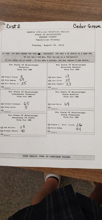 The governor’s race for Republicans is still too close to call, but Reeves seems to be losing ground. With 55% reporting, he’s still in the lead with 48%. Waller, who’s been in second place all night, is at 34%, and Foster has lost ground at 18%. A runoff seems ever more likely.