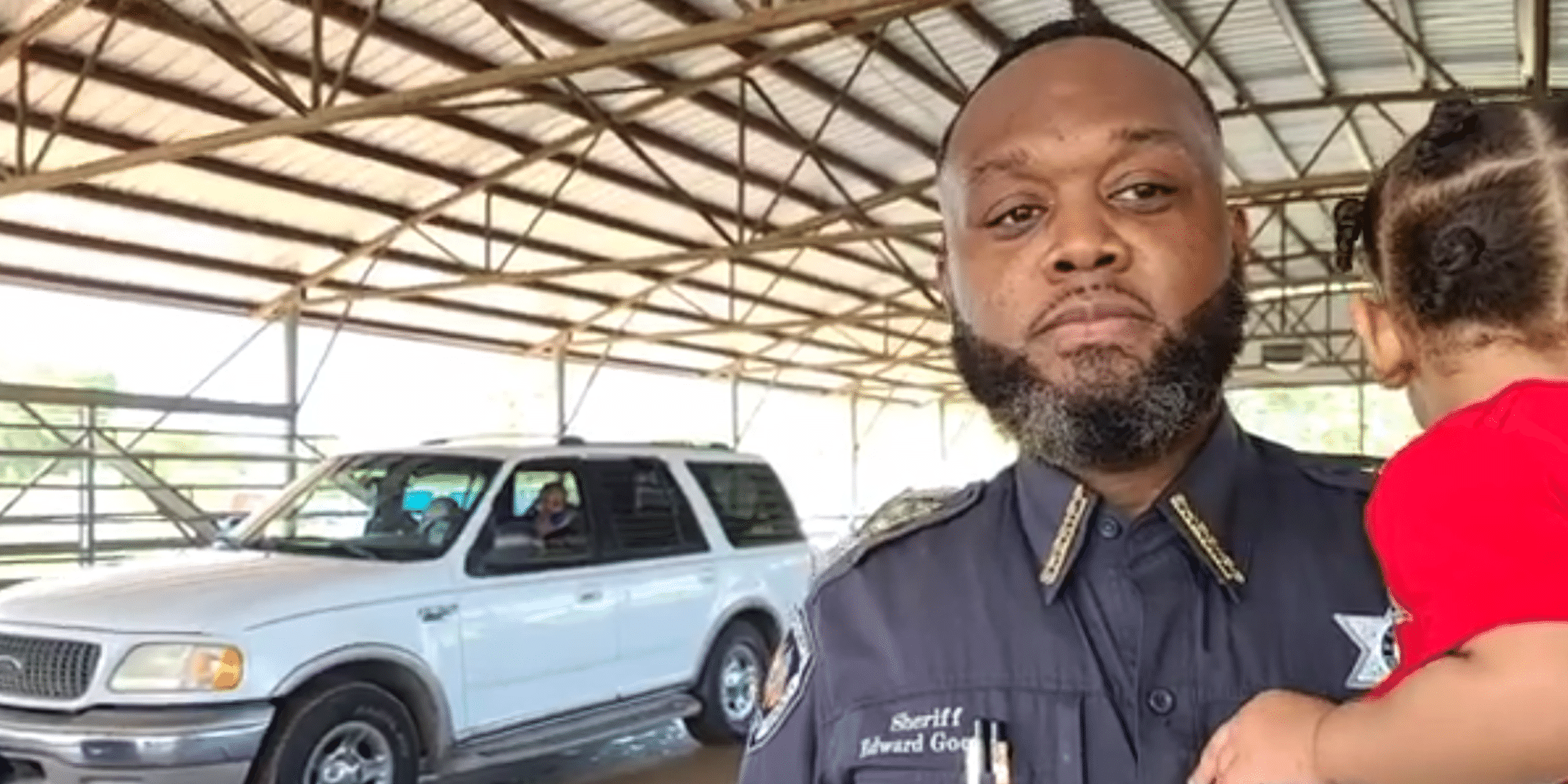 Claiborne County Sheriff Edward Goods oversees a food drive at the Port Gibson Fairgrounds Saturday morning. (Photo: Screengrab from interview with David Day)