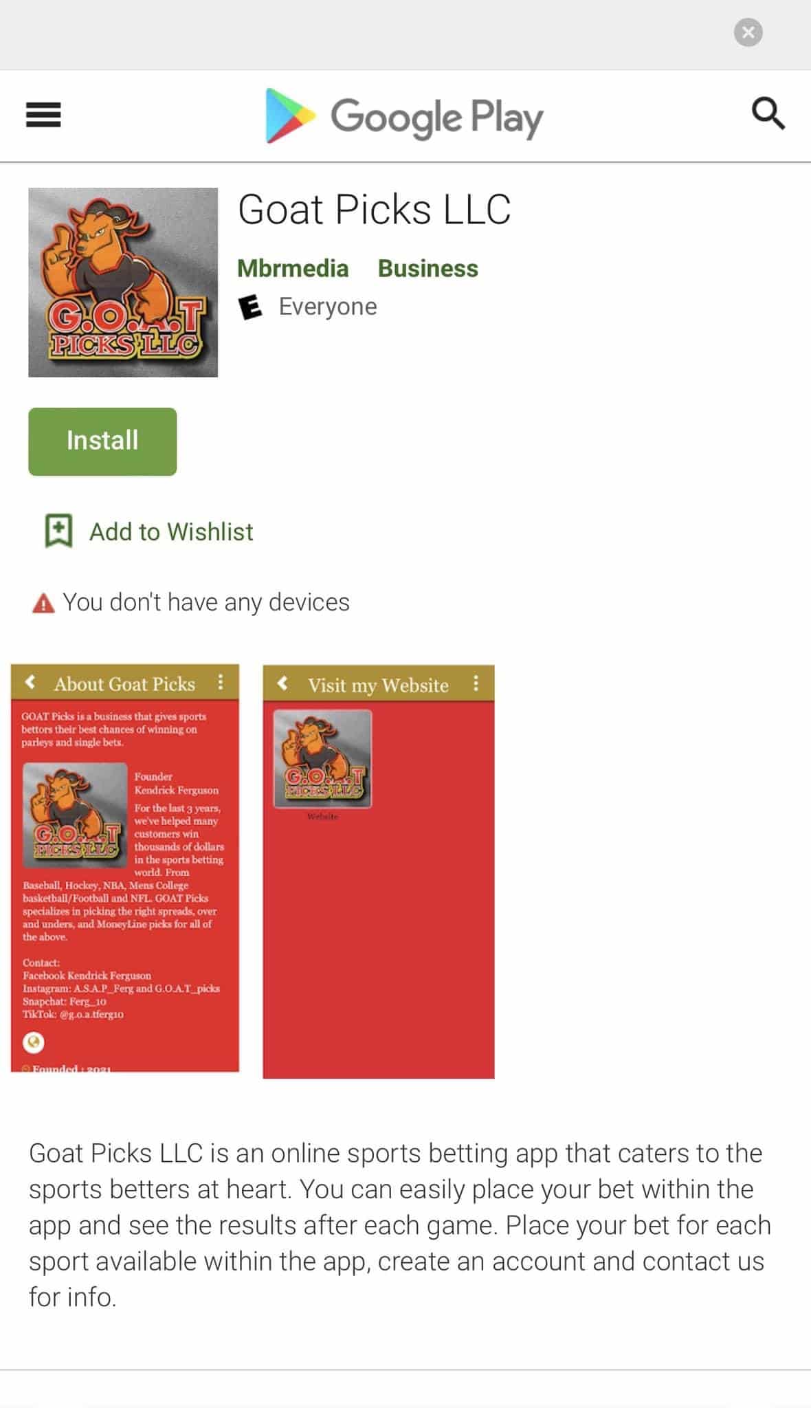 G.O.A.T Picks App is available for download on Google Play. The app allows users to make bets within the app and see the results of each game. Users will also be able to view picks selected Ferguson.