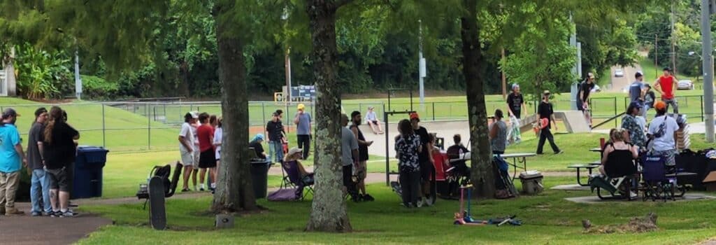 Some like minded individuals put their heads together to bring you a summertime outdoor skate and rock show, right here in good ol’ Vicksburg. It is all happening right now at Vicksburg City Park.
