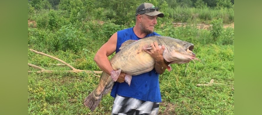 The U.S. Army Corps of Engineers Vicksburg District visitors and staff received a surprise July 19 when a catfish grabbling guide service caught a near-record specimen at Arkabutla Lake.