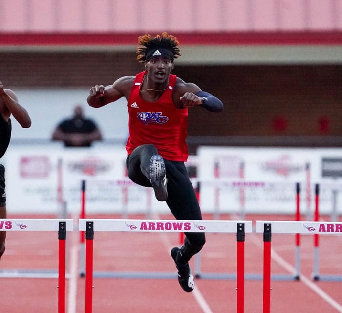 Joshua Griffin is the MHSAA Region 2-6A 2021 Regional 110 and 300 Hurdle Champion. (Photo by Ced Tillman)