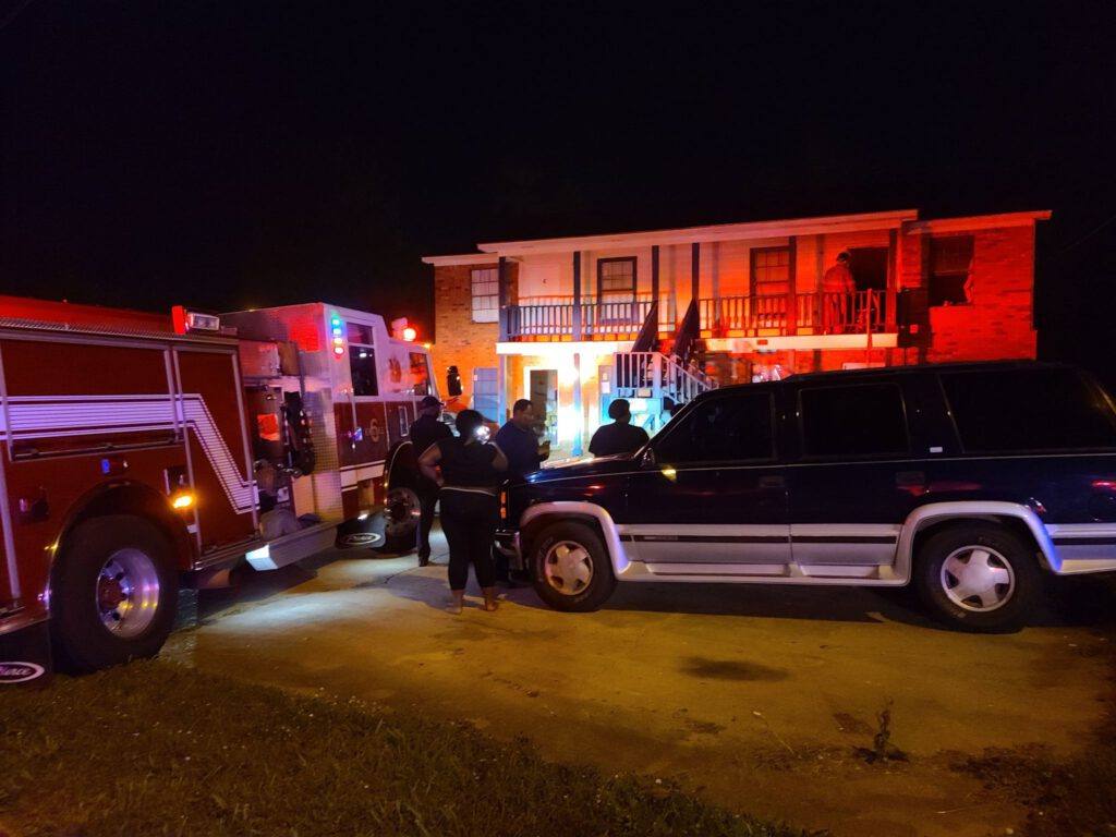An apartment building on Grove Street sparked smoke and flames and prompted Vicksburg Fire Department’s response. (Photo by David Day)