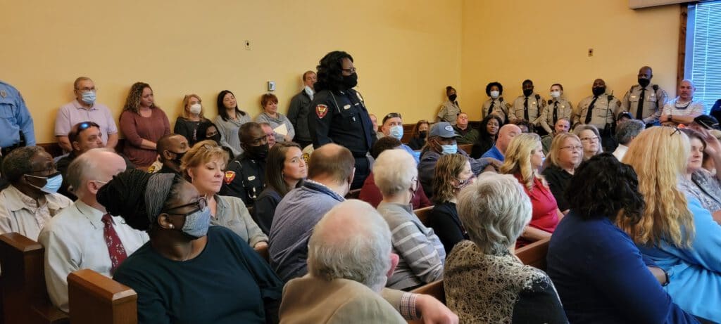 The room was packed with law enforcement, family and friends. (Photo by David Day)