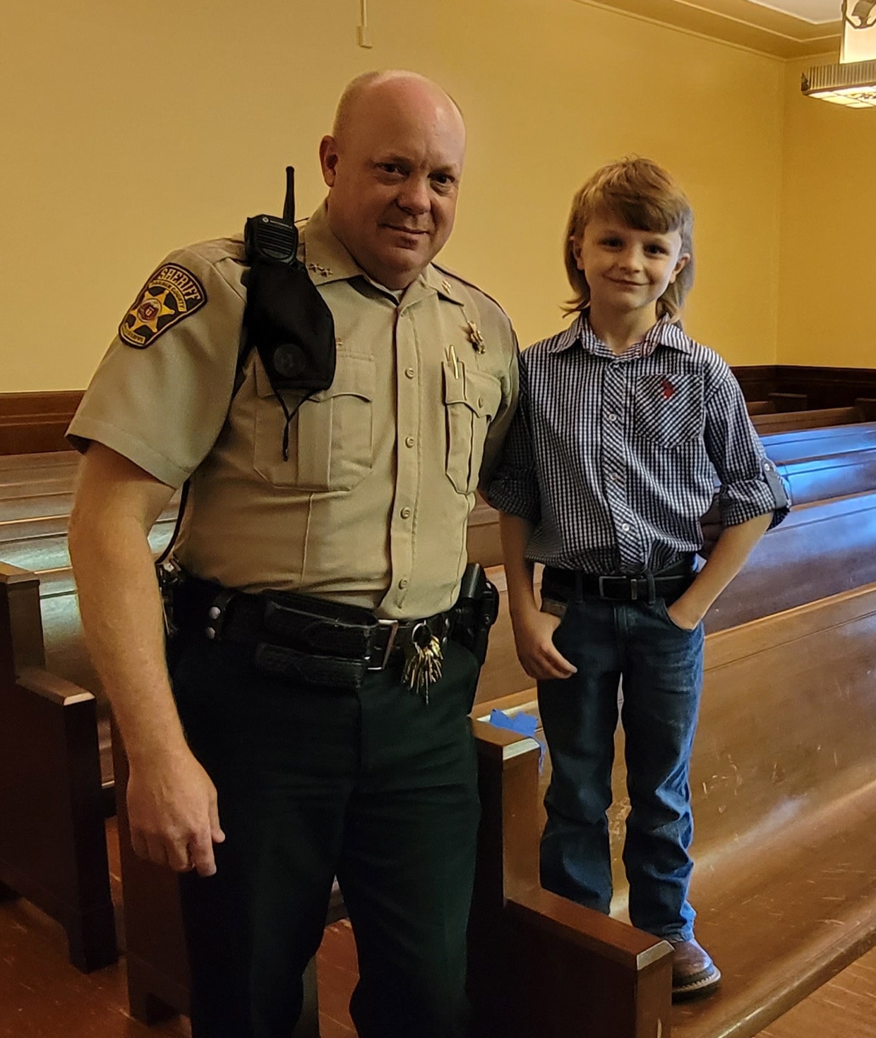 Billy Joe Heggins and a possible future lawman, Cooper Heggins. (Photo by David Day)