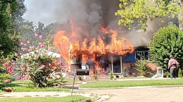 Fire Engine 6 was dispatched at 10:04 a.m. due to the heavy smoke that was visible from several blocks away. Officials report that the home was already 60% engulfed when they arrived on the scene. Thankfully, no one was in the home and there are no injuries. It is unclear at this time how the fire started.