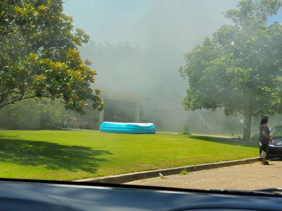 No injuries have been reported. The homeowners are out of town, and neighbors said they are on the way back to Vicksburg.