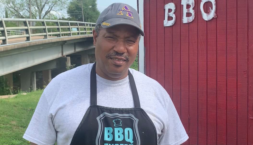 Michael Gates of Big Bee's Barbecue is stepping up by donating business proceeds to the church's water bill dilemma. (Photo by Tommy Parker)