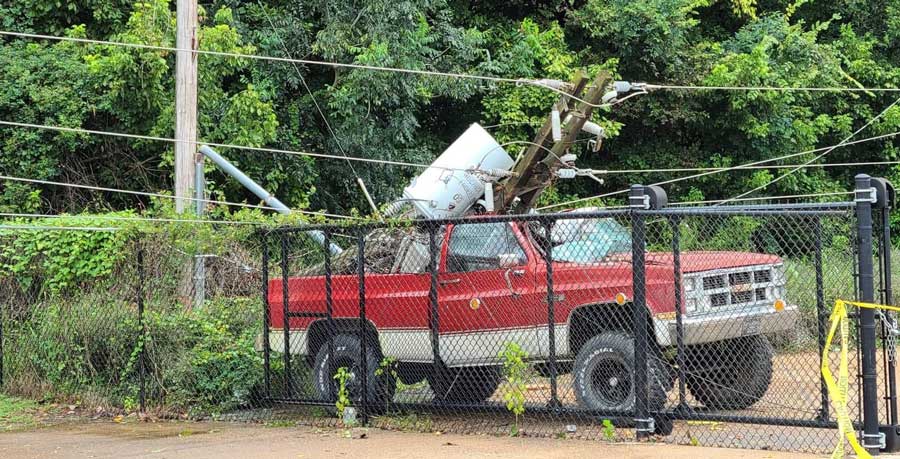Brandon Carr’s 1984 GMC 4×4 was destroyed by a falling utility pole Thursday.