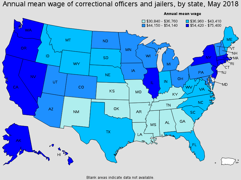 The average salary for a correctional officer in the U.S. is $49,300 a year.