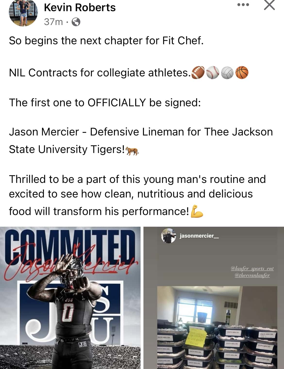 Jackson State University football player Jason Mercier is now the first athlete to sign a NIL deal with Fit Chef.