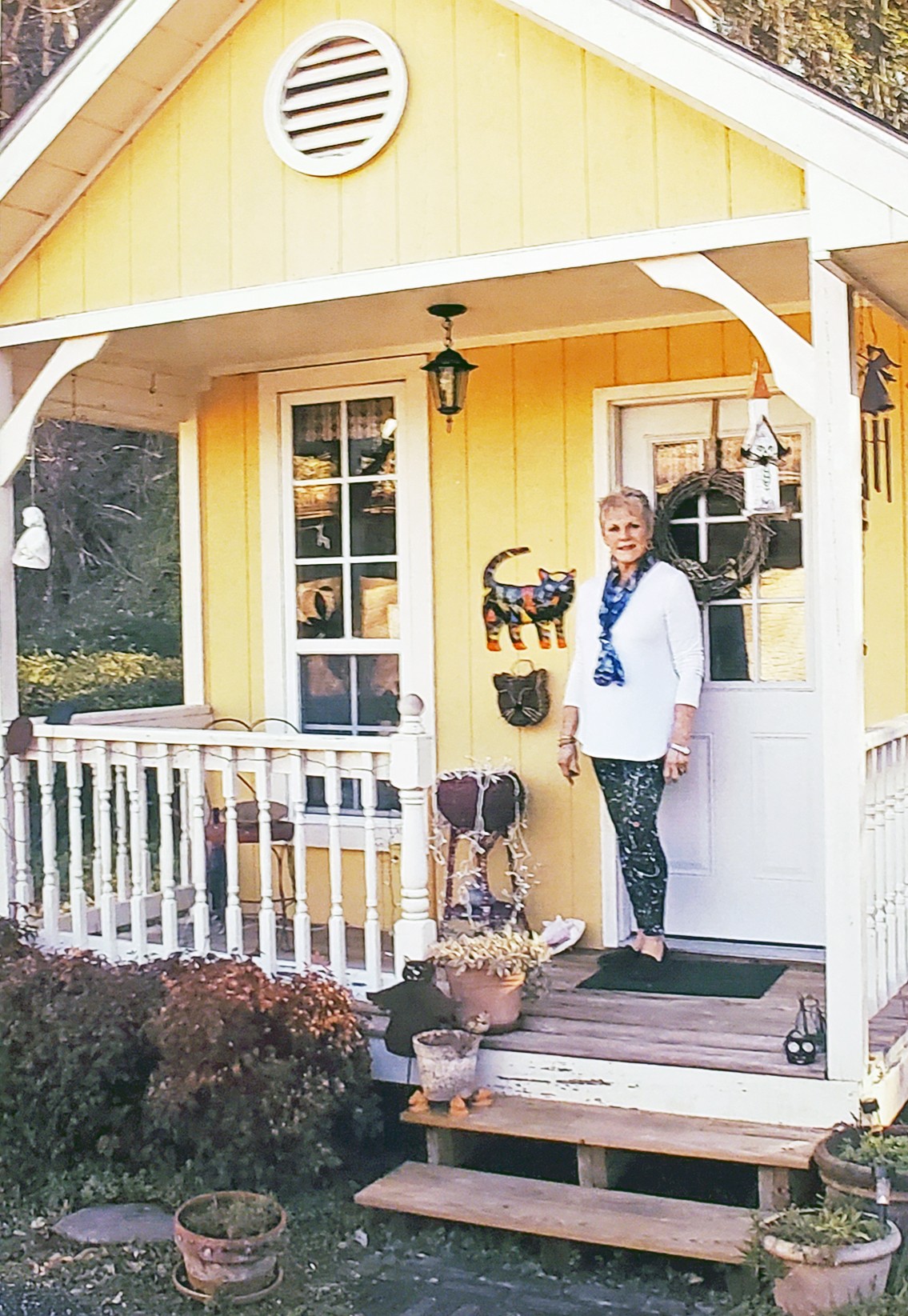 She works from a small studio in her back yard, and the little yellow building includes a porch and a weathervane “because this is the South.”