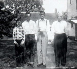 My uncles Eldon, Vincent and Fredrick, and Grandfather Leo Wirth, probably in the late 1930s in Wesley, Iowa.