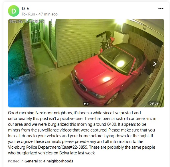 Dwayne Franklin, Sr. took to social media to tell his story on Wednesday. Franklin provided security footage of what appears to be juveniles checking the doors on the vehicles and entering one which was unlocked at around 4:30 a.m. on Fleetwood Drive. In his post, he asked his fellow neighbors to be aware and lock their doors.