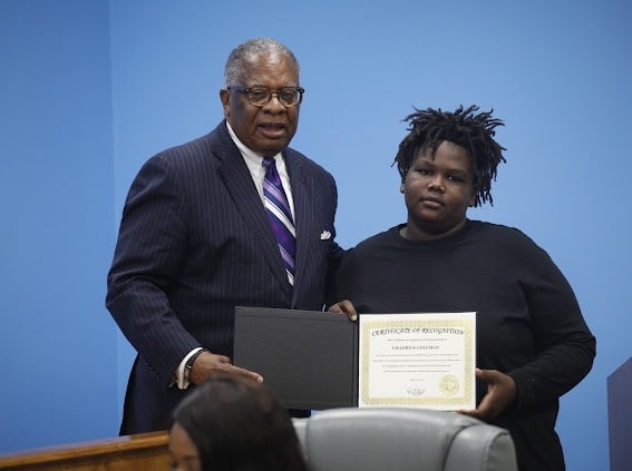 On Monday, two Vicksburg youths were honored for their selfless heroism by the Board of Mayor and Aldermen. D’shundrick Barnes, 12, and Chadrick Coleman, 13, entered an elderly person’s residence and stopped a fire, possibly preventing home damage or injury.