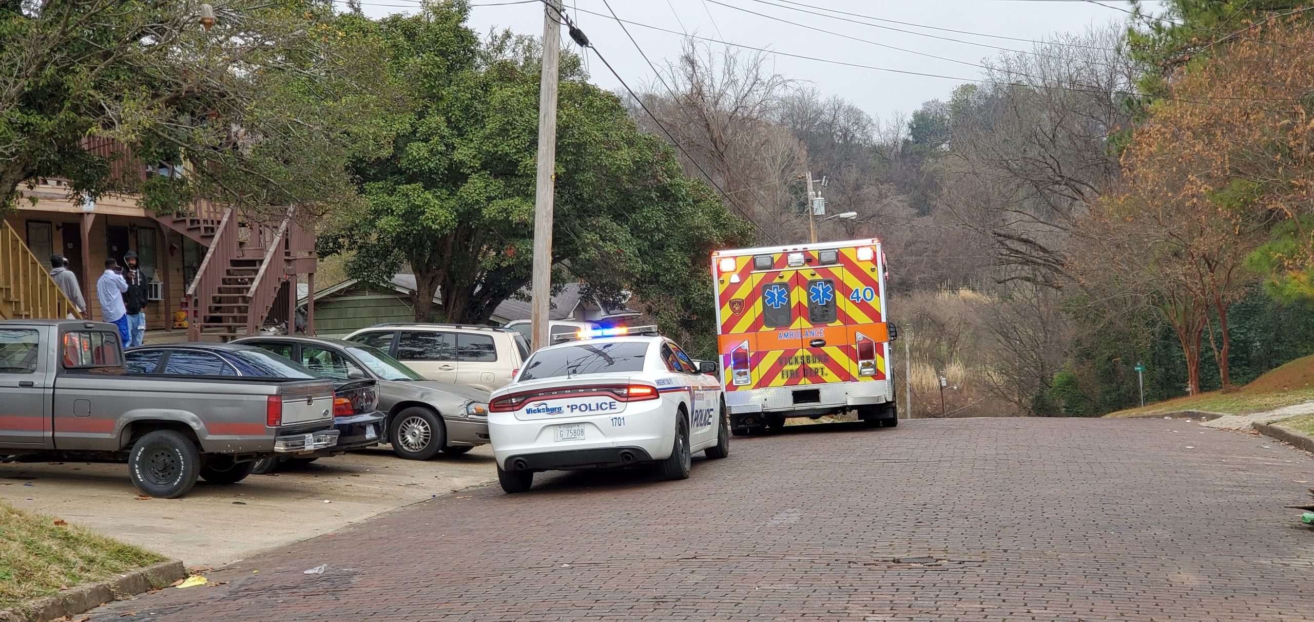 Vicksburg Police officers responded about 8:45 a.m. today to an apparent assault at the apartments near Locust and Jefferson streets.