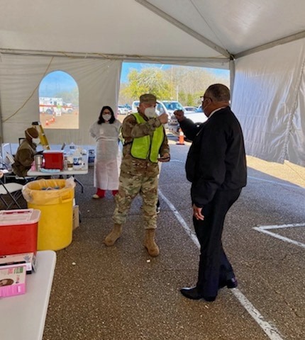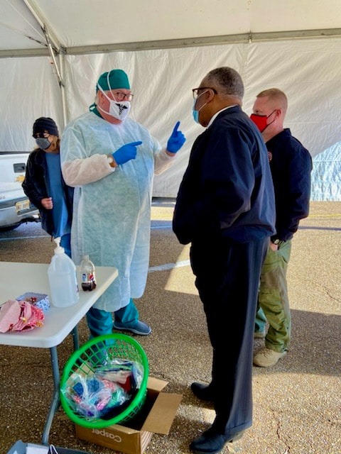 Mayor George Flaggs, Jr. stopped by the newly established drive through COVID-19 vaccination site at Uptown Vicksburg (also known as Pemberton Square Mall) on Wednesday to express his gratitude for the hard work of all those that make the site possible.