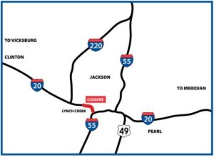 The piece of I-20 affected is west of the city of Jackson over Lynch Creek. The section was originally scheduled to reopen this morning.
