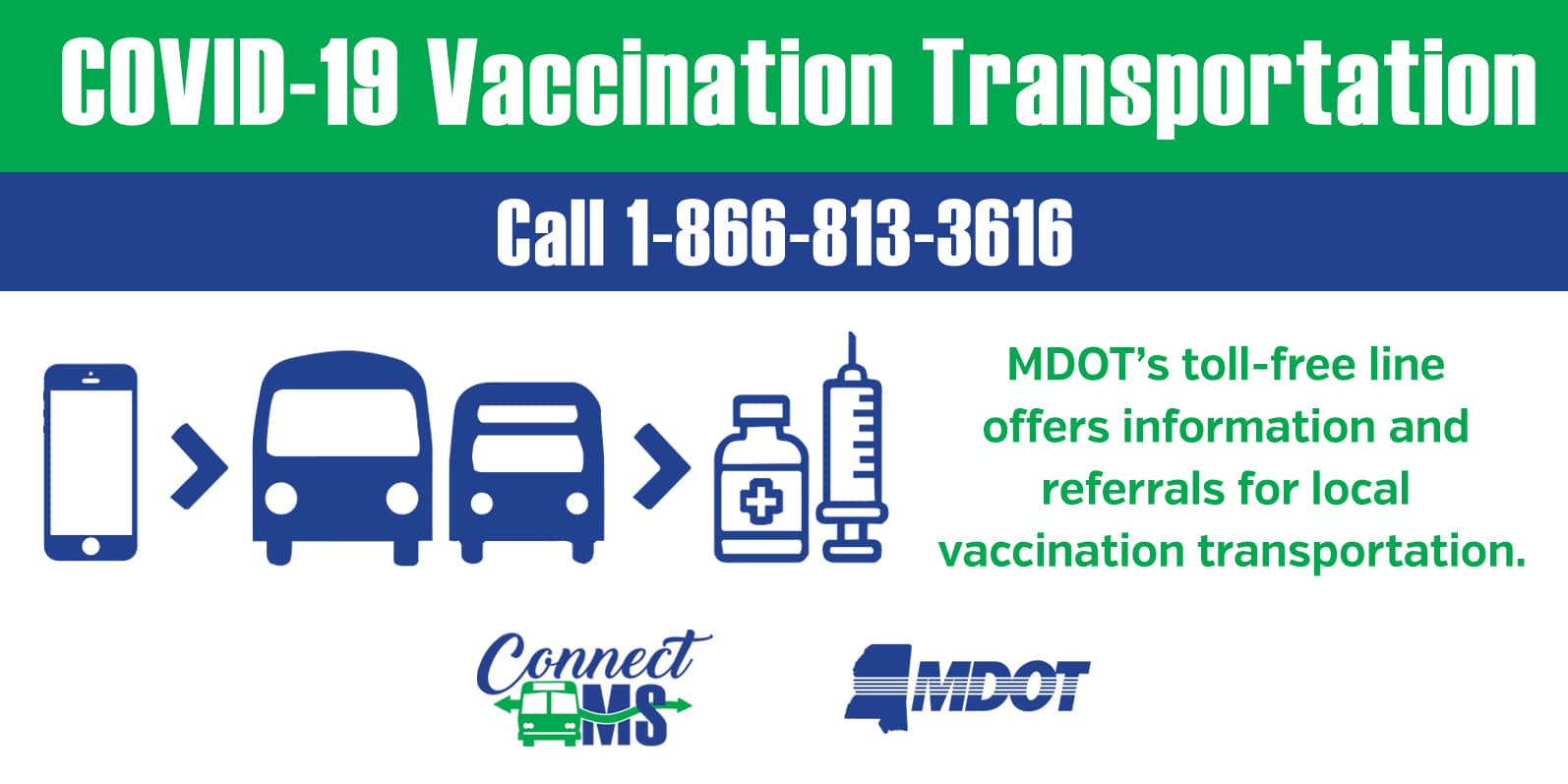 The Mississippi Department of Transportation (MDOT) continues its support for a statewide initiative that assists local residents schedule free rides to local COVID-19 vaccination sites. While not limited to a particular group, the emphasis is placed on linking persons facing transportation challenges, such as disabled or low-income individuals, veterans and the elderly, with available transportation providers.