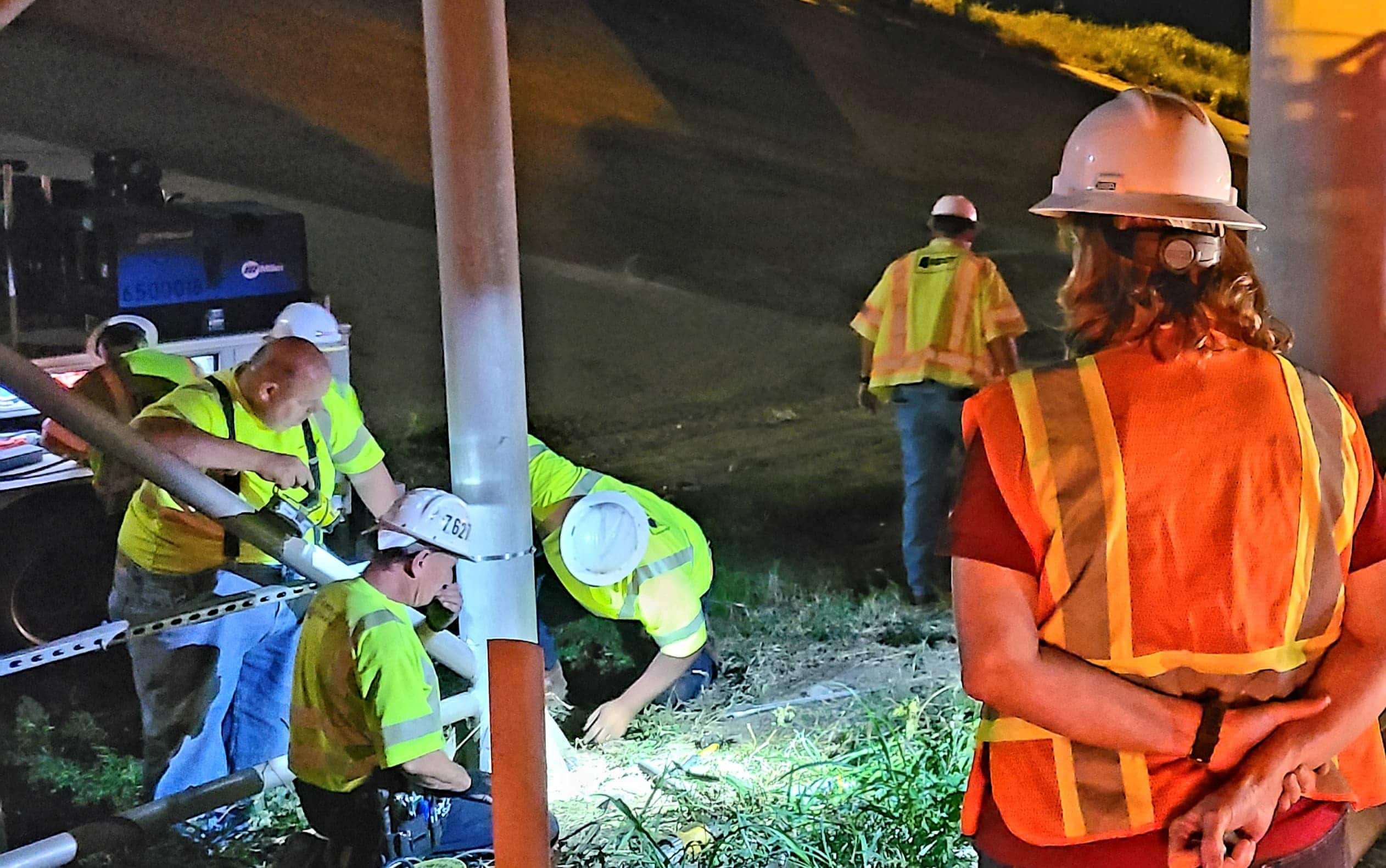 After a long day of work, the job is nearly done, ensuring a clear Monday morning commute for the many people that depend on the bridge.