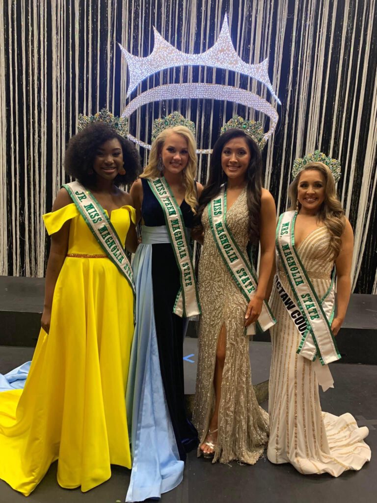 From left to right: Kai Davis, Gulfport, Jr. Miss Magnolia State. Emma Mcneer, Olive Branch, Miss teen Magnolia State. Haley Shue, Brandon, Miss Magnolia State. Kayla McMinn, Sturgis, Mrs Magnolia. (Photo By: Tara Hunter, Public Relations Director)