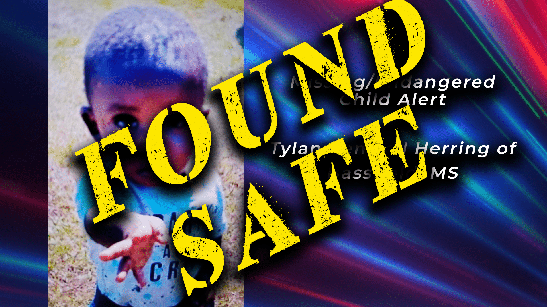 The Endangered/Missing Child Alert for 2-year-old Tylan Kentrell Herring of Bassfield, MS, in Jefferson Davis County has been cancelled. The Mississippi Bureau of Investigation has announced he has been located and is safe.