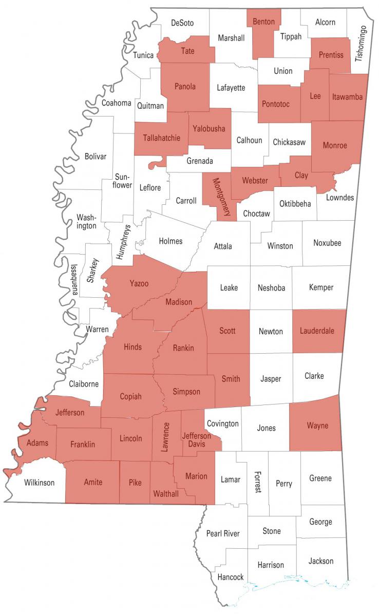 The number of county-wide burn bans in Mississippi has more than doubled since Friday, bringing the total number to 30 by 2:45 p.m. today, Oct. 1.