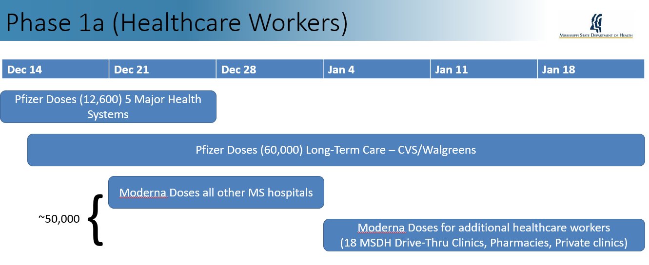 In addition, the Mississippi State Department of Health is partnering with CVS and Walgreen’s pharmacies to distribute the vaccines to long-term care facilities such as nursing homes. Both companies are working in multiple states to ensure the people who are most vulnerable have access to the vaccine soon.