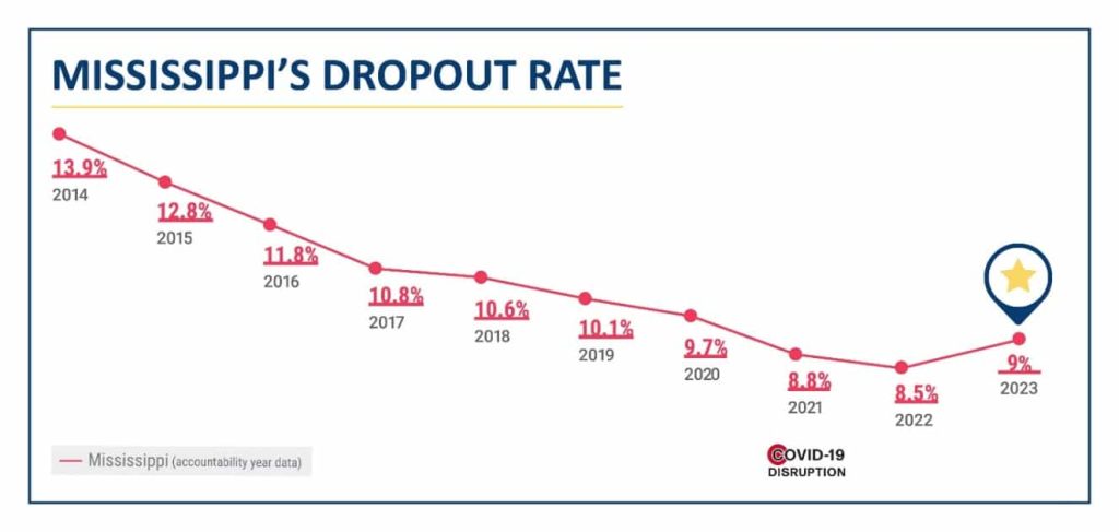 Mississippi’s graduation rate exceeds the latest U.S. rate of 86.5% from 2019-20 reported by the National Center for Education Statistics (NCES).