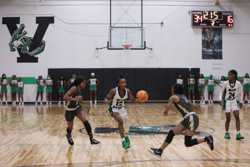 VHS eventually tied things up at eight with the help of Jelisa Tyler, Layla Carter and Sims who managed to get shots off. Soon the Missy Gators took over the quarter and extended their lead to 23-11 as Ja’Na Colenburg hit a three pointer as time expired in the first quarter.