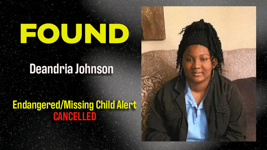 Authorities have cancelled the Endangered/Missing Child Alert for Deandria Johnson, a 13-year-old Ocean Springs girl who went missing on Saturday.