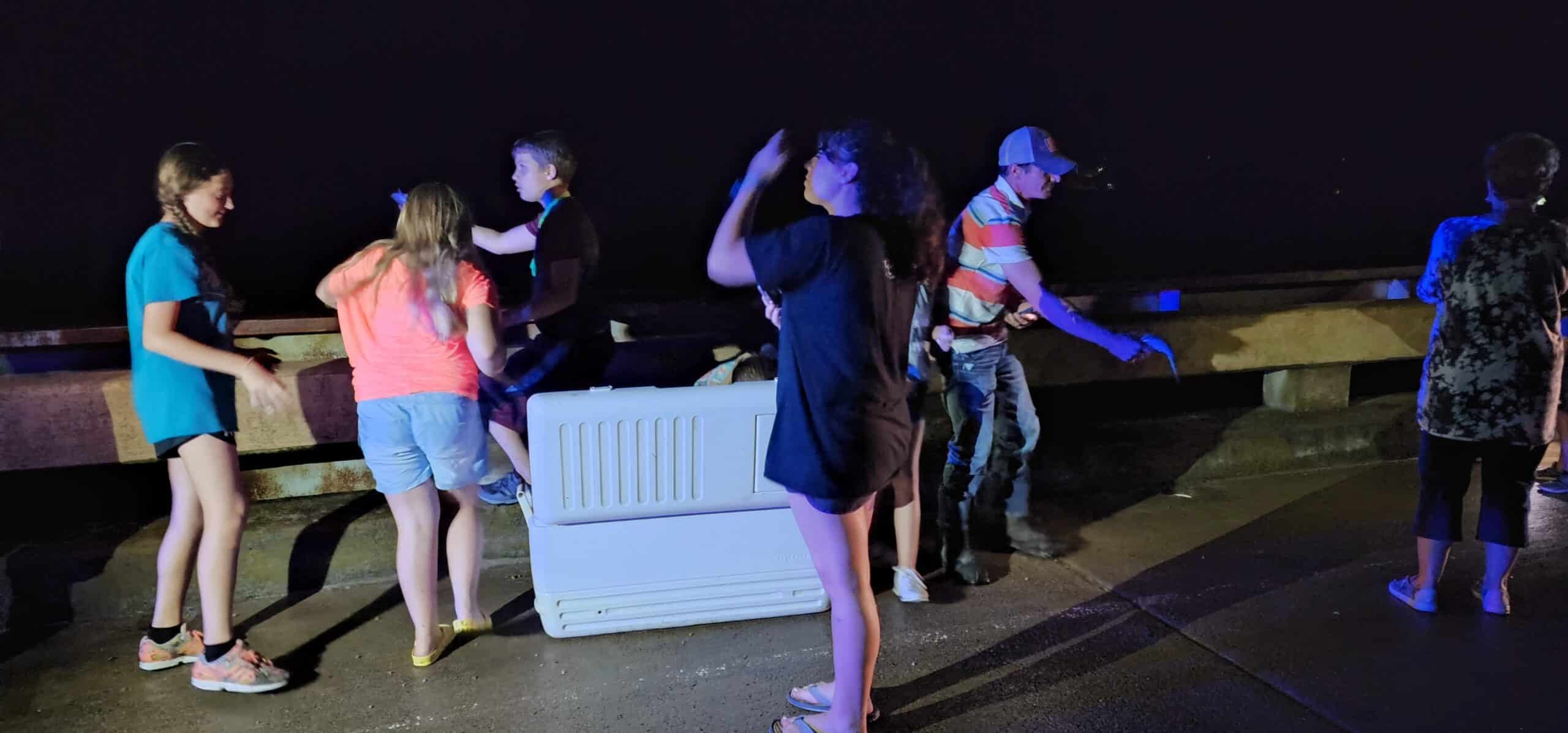 The owner of the champion racing catfish, Esq., was 84-year-old Sandy Hollars of Eagle Lake. She was awarded a trophy cup and invited to return the following year to defend her championship. Her winning entry along with the other catfish was released into the Yazoo River from the haunted Satartia Bridge by a willing group of children who lofted them into the waters. Ryan Donovan graciously lofted more fish than anyone else (photographic evidence below).