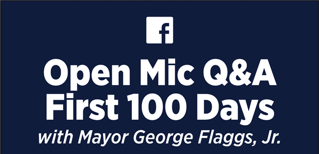 An open mic Q&A for the first 100 days with Mayor George Flaggs, Jr. will be held Wednesday, July 14 at 6 p.m.