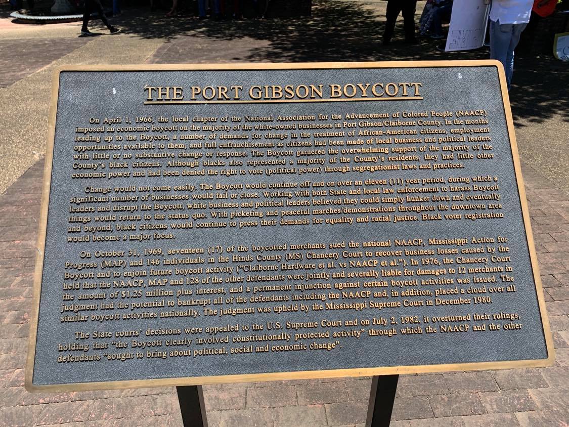 A nice crowd turned out for a march through downtown Port Gibson, Mississippi, followed by speeches across from the Claiborne County Courthouse. In the shadow of a statue of a confederate soldier, all echoed their desire to see the statue removed and replaced with something more reflective of the community’s predominately African American population. The last census showed the county’s make-up as 84% black.